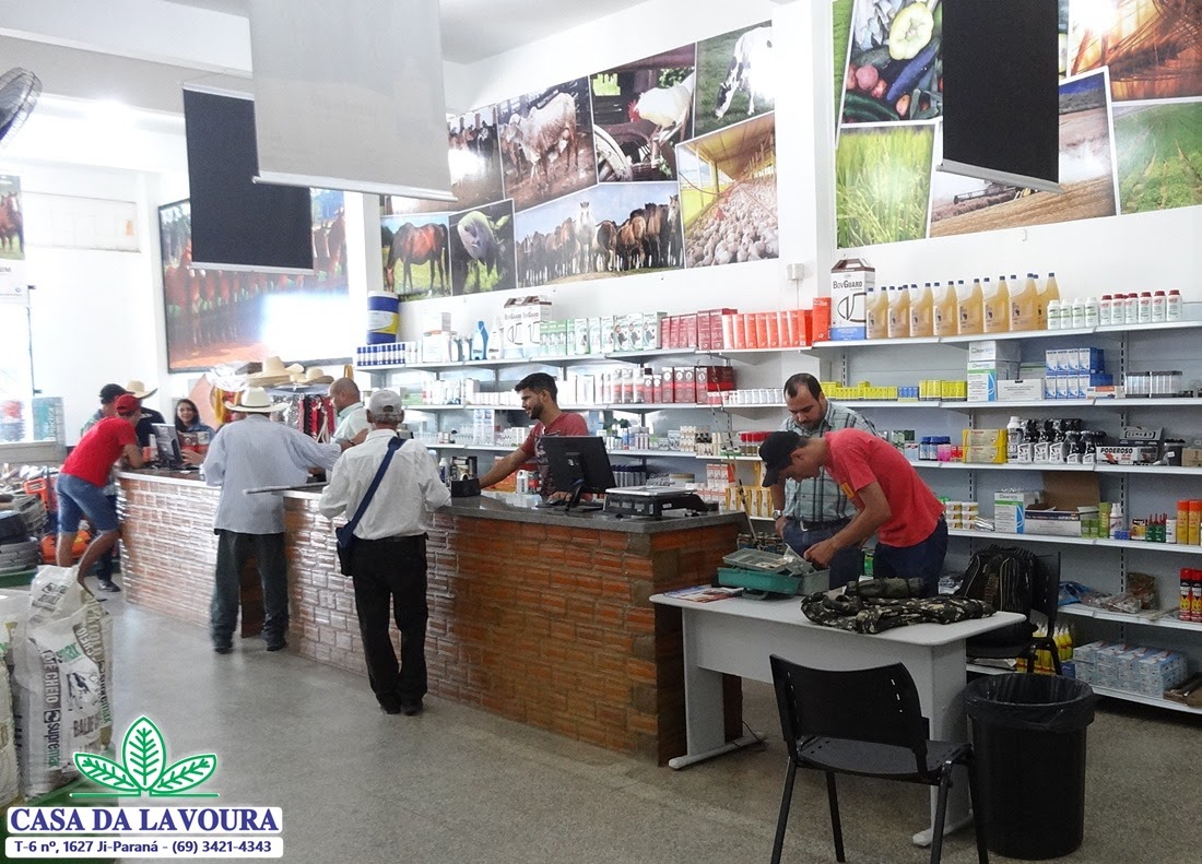 A Casa da Lavoura, da T-6 no Bairro Brasília em Ji-Paraná, possui uma ótima equipe de vendas, atendendo clientes e produtores rurais da região do 2º Distrito com itens de ótima qualidade para chácaras, sítios ou fazendas, como produtos veterinários, medicamentos, dedetização, defensivos, fertilizantes, sementes, ferramentas, pet shop, acessórios, máquinas, motores e componentes agrícolas e muito mais.