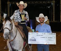 A disputa foi acirradíssima em duas categorias: kids com crianças de até oito anos e a feminina, independente da faixa etária. Foram mais de R$ 7 mil em premiação, onde os campeões receberam uma boa soma em dinheiro e troféu. Ione Assis de Jaru e sua égua Juliana Sugarman venceram a competição com tempo de 17, 054.