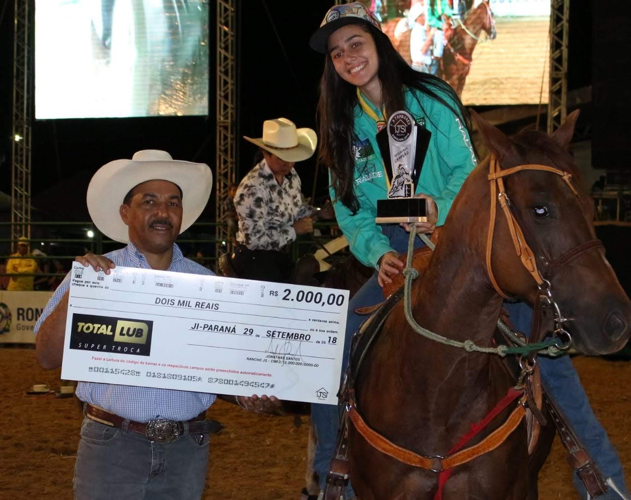 A Primeira Prova de Três Tambores promovida pelo Rancho JS na 39ª Exposição Agropecuária, Industrial e Comercial de Ji-Paraná reuniu competidores de várias regiões de Rondônia no Parque de Exposições Hermínio Victorelli.