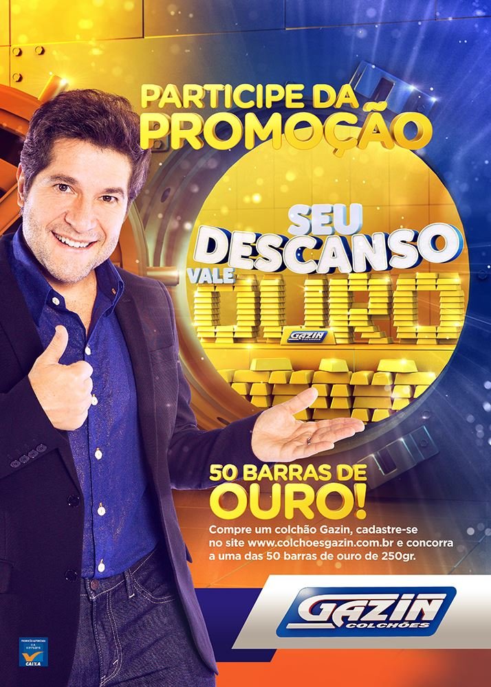 Os clientes têm duas formas de participar, aumentando suas chances de ganhar. A promoção ‘50 Anos, 50 Barras de Ouro’ irá premiar 50 consumidores com uma barra de ouro de 250 g, no valor de mais de R$ 30 mil cada. Compras acima de R$ 100,00, em um dos 226 pontos de venda, distribuídos no Acre, Amazonas, Mato Grosso do Sul, Mato Grosso, Pará, Paraná e Rondônia, dão direito a um cupom. A quantidade de prêmios dobra em outra ação, intitulada ‘Seu Descanso Vale Ouro’, voltada especificamente para compradores de Gazin Colchões em qualquer loja multimarca do País. Neste caso, os compradores devem cadastrar o número da nota fiscal no sitewww.colchoesgazin.com.br, que será revertido em um cupom eletrônico para concorrer ao próximo sorteio. Os vencedores serão sorteados em quatro etapas, sendo 20 de abril, 20 de julho, 20 de outubro e 10 de janeiro de 2017.