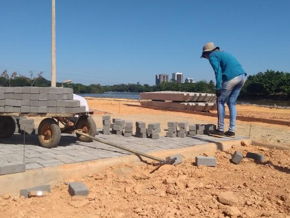 As obras da praça do beira rio cultural, um dos principais pontos turísticos de Ji-Paraná às margens do rio Machado, avançam com o calçamento em paver, uma espécie de tijolo confeccionado com concreto. A praça revitalizada deverá ser entregue à sociedade local em setembro, conforme cronograma contratual entre a construtora e o governo estadual, por meio do Departamento de Estradas de Rodagem, Infraestrutura e Serviços Públicos (DER).