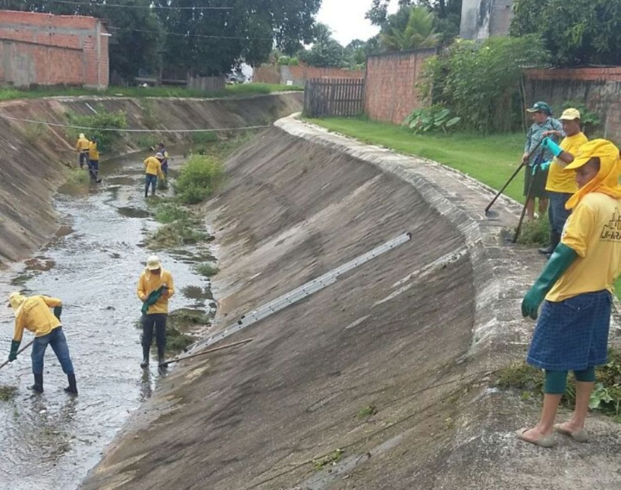 Outro trabalho que vem sendo realizado pela Secretaria de Obras é a limpeza de leitos de igarapés e córregos não canalizados que cortam o perímetro urbano da cidade. É um serviço que não é interrompido, sendo realizado praticamente o ano todo.