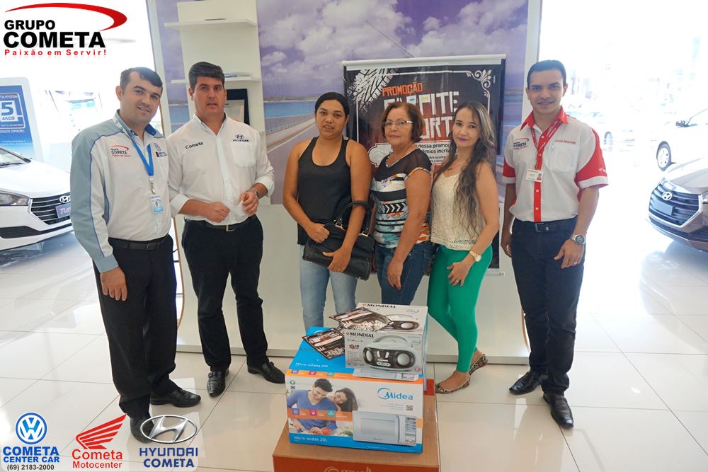 A promoção envolveu as concessionárias de Ji-Paraná, Cometa Motocenter, Cometa Center Car e Cometa Hyundai, onde nesta foi feita a entrega da premiação na tarde da 2ª feira 18/07. A Rádio Alvorada e o site VipFesta registrou o momento. Confira as fotos: