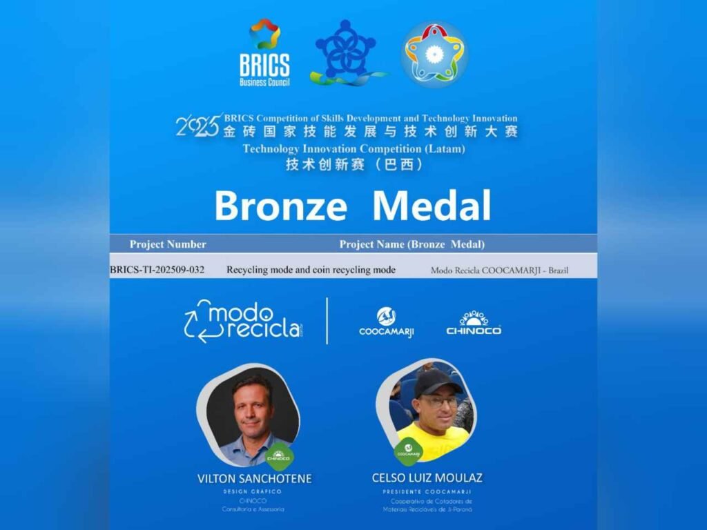 O presidente da COOCAMARJI, Celso Luiz, também celebrou a conquista: “Foi emocionante ver um projeto de Rondônia competir com grandes países. O Modo Recicla mostrou seu potencial ao disputar com iniciativas de alto impacto social, ambiental e econômico, garantindo a medalha de bronze pelo modelo de inovação”, afirmou.